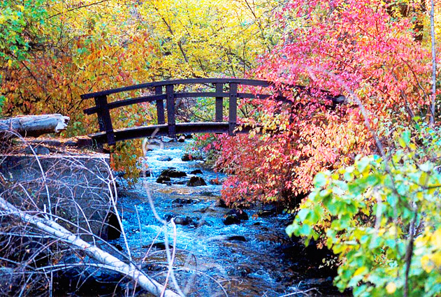 This bridge was at a northern Utah campground ready to be closed for the winter .Techniques used : rule of thirds (the bridge) ; framing (all around the bridge) ; lines/objects(the water) leading"into the frame"and "towards the center of interest" ( once again - the bridge ). Areas of sharpness -the bridge and a few branches. A breezy day ! (Above -Windows "only". Below -Safari "only").